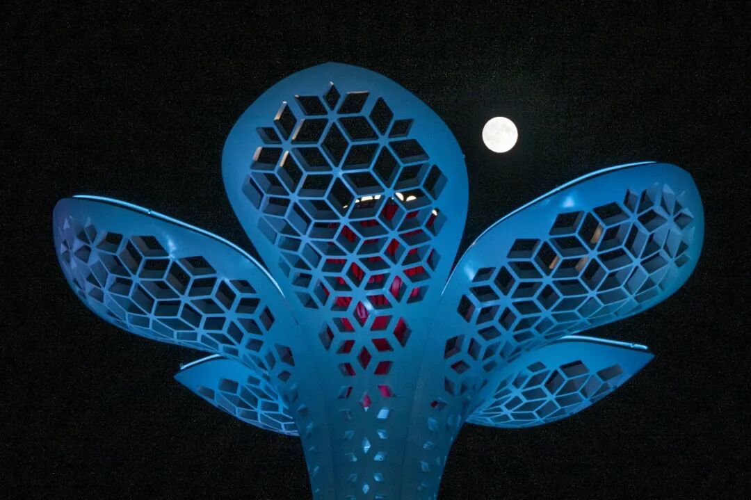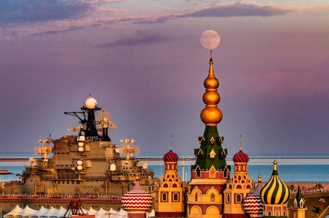 10月6日在天津市滨海新区泰达航母主题公园拍摄的中秋满月(无人机照片)。新华社发(杜鹏辉摄)