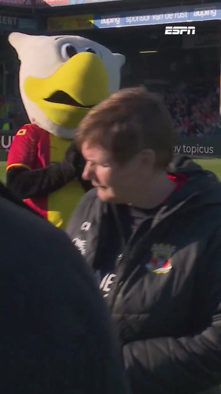 04月25日讯 荷甲第31轮,前进之鹰0-0战平阿尔克马尔,比赛开始前,前进之鹰特意为洗衣房员工卡拉举办了退休仪式。